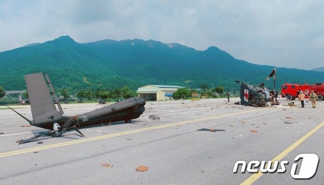 ☆韓国軍メディオンへり テイル吹っ飛んでる