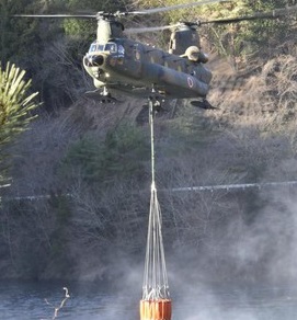 CH-47チヌーク2機が出動して 消火作業に当たっています